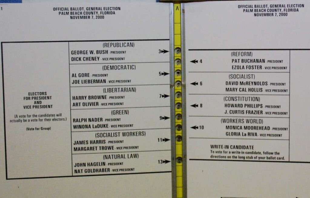 Election day came and no-one won. The states were relatively evenly divided, with Gore having 266 Electoral Votes and Bush having 246, out of the 270 needed to win. However, the problem was Florida. Their problem was that the ballots were designed to cater to old people, a large part of Florida’s population and especially in the county of Palm Beach, wherein a hole would be punched in the ballot as many could not hold a pen properly. Which seems reasonable enough until you see how the ballot was formatted.